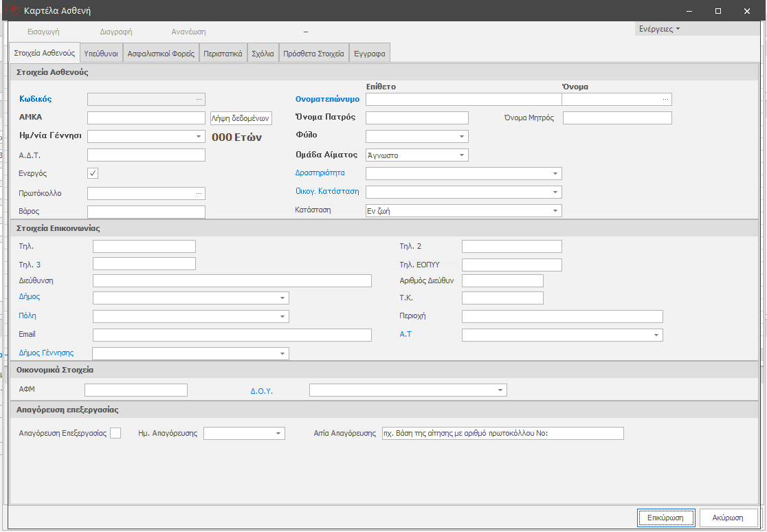 1. Στοιχεία Ασθενούς Εδώ προσθέτουμε τα στοιχεία του ασθενή