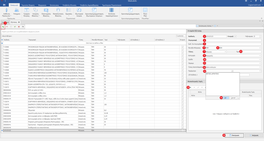 - Βήμα 15: Κάνουμε κλικ στο σύμβολο “+” για να συμπληρώσουμε τα όρια των Φυσιολογικών Τιμών της Εξέτασης για Άντρες και Γυναίκες(Προαιρετικό Πεδίο).