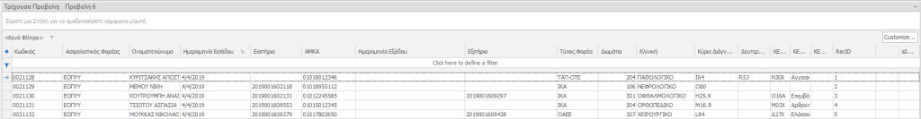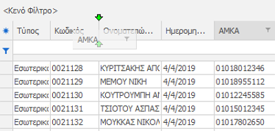 *Στο επάνω μέρος της κεφαλίδας εμφανίζονται τα κριτήρια της αναζήτησης (πάνω από τις πρώτες στήλες).