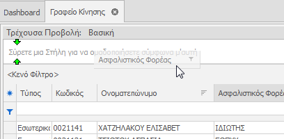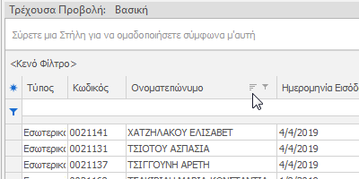 Στην κεφαλίδα των στηλών στην αριστερή πλευρά στο εικονίδιο του αστερίσκου εμφανίζονται τα διαθέσιμα πεδία που μπορεί να εμφανιστούν αναλόγως το σημείο που βρίσκεται η λίστα.