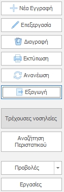 - Εισαγωγή Συνεχιζόμενης Νοσηλείας: Διαδικασία για την επανεισαγωγή περιστατικού. Ουσιαστικά δημιουργεί αντίγραφο της προηγούμενης νοσηλείας ώστε να επιταχύνεται η συγκεκριμένη εργασία.