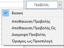 - Αποθήκευση: Για την αποθήκευση υπάρχουσας προβολής (σε περίπτωση αλλαγής).