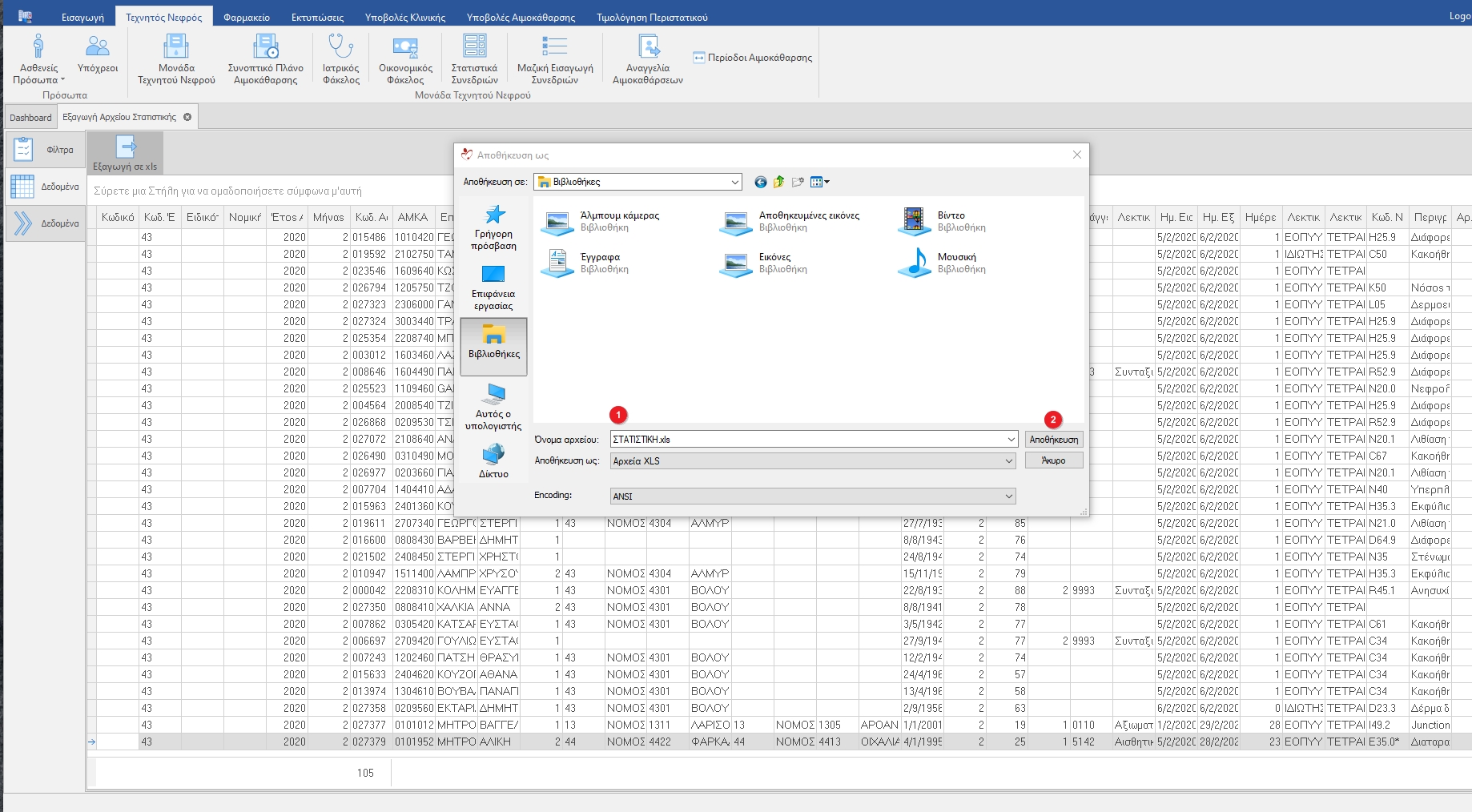 Στο παράθυρο διαλόγου Αποθήκευση ως επιλέγουμε το όνομα του αρχείου(1) που θα δημιουργήσουμε και πατάμε Αποθήκευση(2).