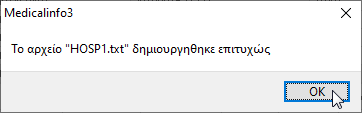 Εφόσον όλα έγιναν σωστά το λογισμικό θα σας εμφανίσει το δίπλα παράθυρο.Το αρχείο πλέον βρίσκεται στην Επιφάνεια εργασίας με την ονομασία “HOSP1.txt”