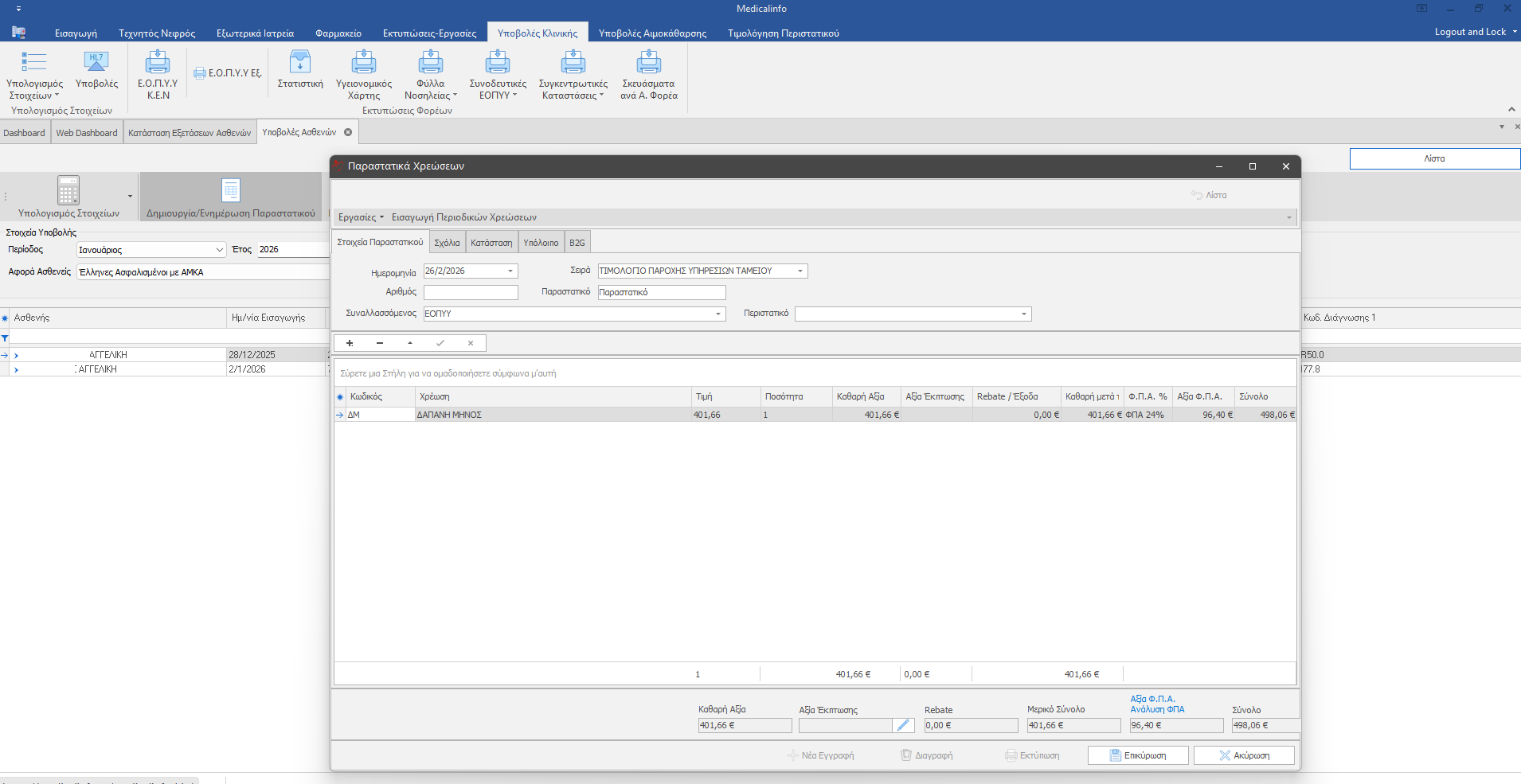 Στη συνέχεια κάνουμε κλικ στο πλήκτρο Δημιουργία/Ενημέρωση Παραστατικού ώστε να δημιουργήσουμε το παραστατικό της Υποβολής.