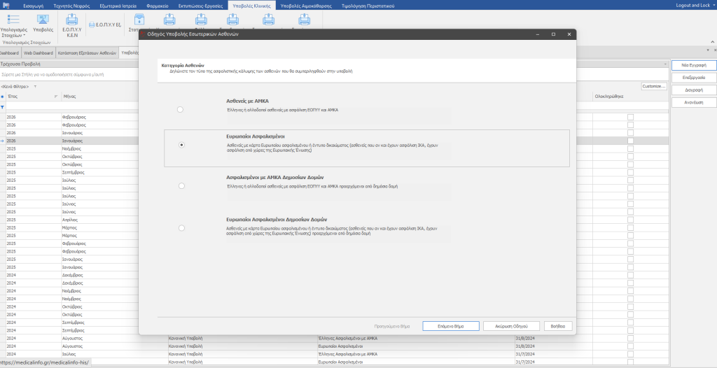 Η συγκεκριμένη διαδικασία είναι πανομοιότυπη με αυτή των Ελλήνων ασφαλισμένων απλώς επιλέγουμε την σύμβαση για τους Ευρωπαίους και συμπληρώνουμε το αριθμό υποβολής τους eΔΑΠΥ.