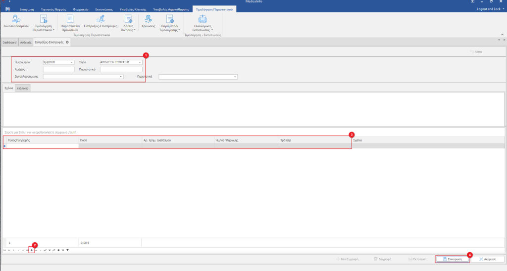 Σε αυτό το κύκλωμα διαχειριζόμαστε τις εισπράξης/πληρωμές των ασθενών και φορέων.
