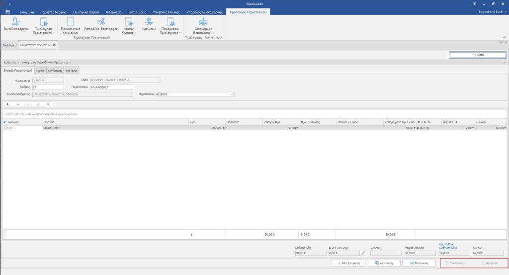 Τιμολόγηση Περιστατικού Για την τιμολόγηση ενός περιστατικού ακολουθούμε την παρ