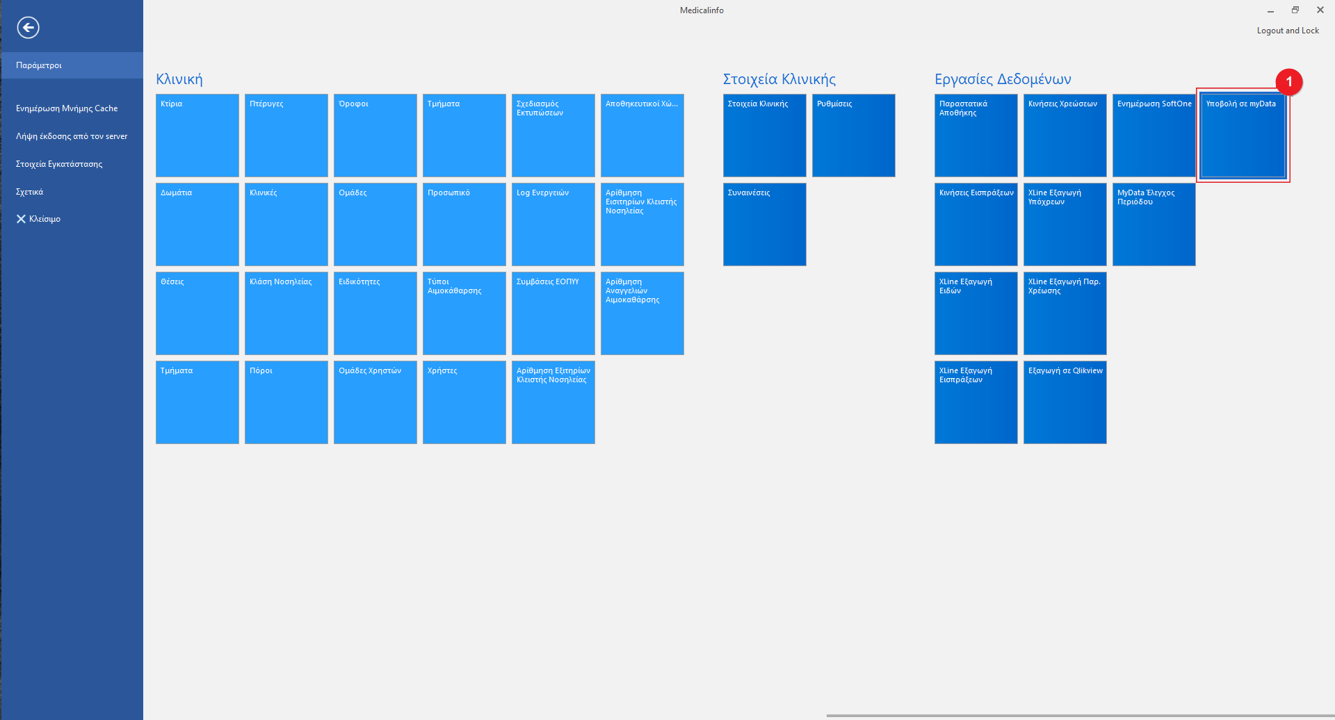 Για την είσοδο στην λειτουργία θα πρέπει να υπάρχει το εικονίδιο Υποβολή σε myData(1) εντός της παραμετροποίησης της εφαρμογής. Κάνουμε κλικ πάνω στο εικονίδιο για είσοδο στη λειτουργία.