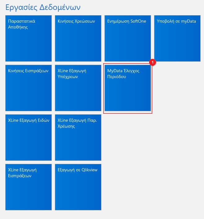 Για την είσοδο στη λειτουργία MyData Έλεγχος Περιόδου από την παραμετροποίηση της εφαρμογής κάνουμε κλικ στο εικονίδιο