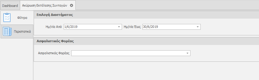 Η Ακύρωση Εκτέλεσης συνταγών, σαν διαδικασία, είναι ακριβώς η ίδια σαν την Εκτέλεση. Επιλέγουμε δηλαδή διάστημα, μέσα στο οποίο υπάρχουν εκτελεσμένες συνταγές-δελτία ανάλωσης.