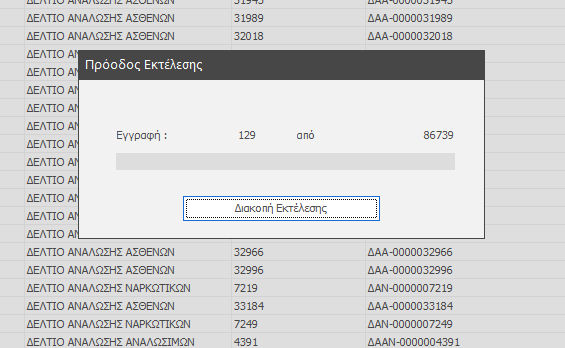 Εάν όλα τα βήματα μας είναι σωστά μας ανοίγει η Πρόοδος Εκτέλεσης.